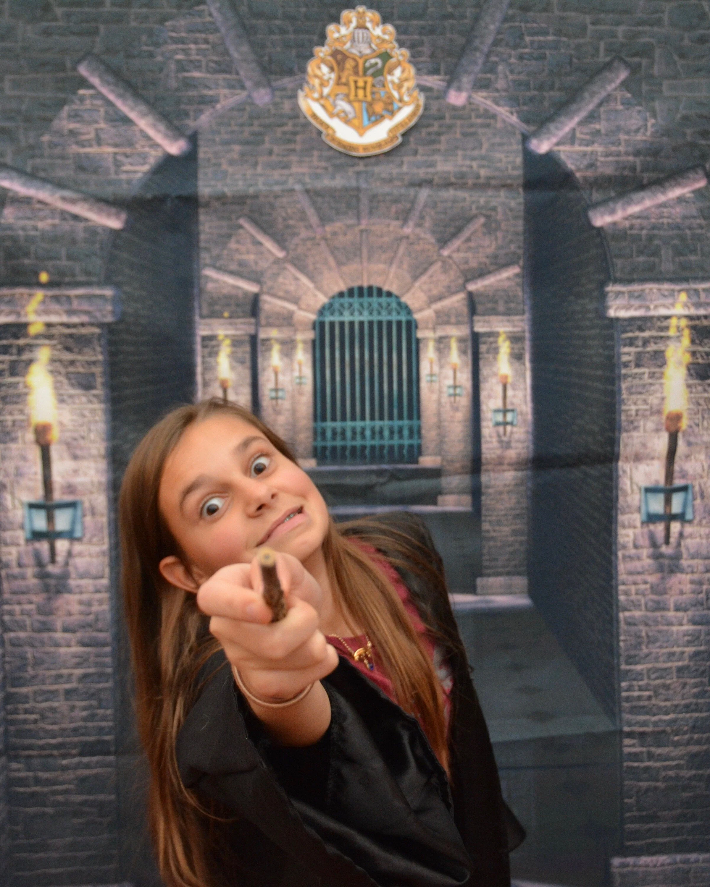 Backdrop: The key to a photo booth is a good backdrop. That can be any solid background that draws the attention in the photo to the individual(s) and not all of the busyness of the party. It can be as simple as the fence in the animal mask shots or be “dressed up” with details like the pink Halloween ghosts. For some parties we have just pulled the curtains closed, or hung a piece of fabric against a wall, or even made a backdrop out of butcher paper. If you do not have a space to hang a backdrop on the wall, or are seeking a detailed backdrop, you can use a backdrop stand. The backdrops typically come in two different varieties - fabric styles that hang much like curtains (such as those shown in the gold sequin photos) or vinyl backdrops that you clamp to a frame. The vinyl backdrops come printed with a design on them that give the appearance that the person is standing in a completely different location (such as the Harry Potter castle backdrop above). Amazon has a lot of options for under $25.00, many options linked below, just make sure it will be big enough for the space you need to cover.