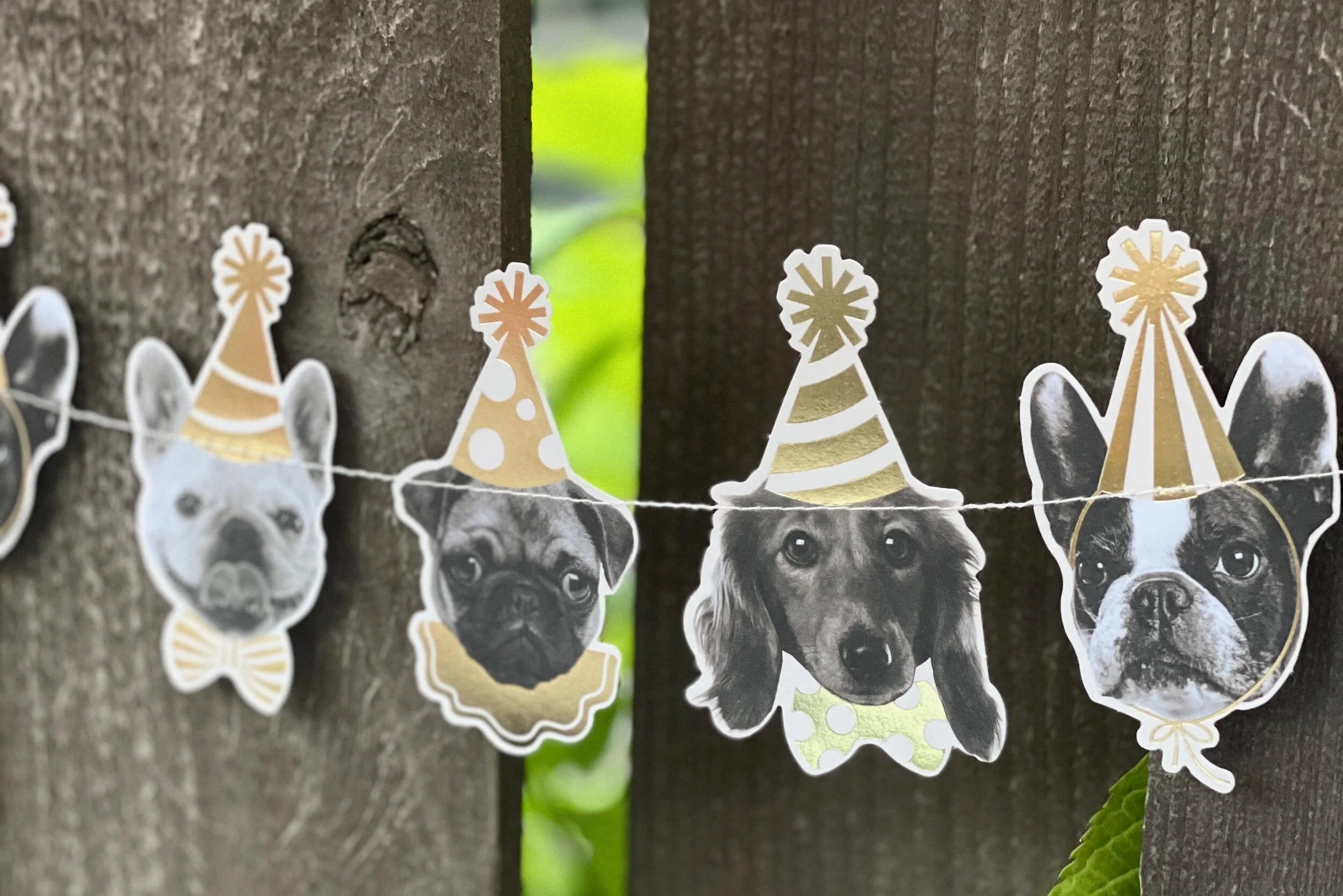 Cindy did a great job with the little details!! She made the adorable cupcake toppers with the schnauzer face on her Glowforge machine. She also cut out the fun dog bone “doggie bag” tags for the treat bags. The banner, plates and napkins were part of My Minds Eye Party Animal collection. The turf table runner was left over from our backyard turf project that we cut into a runner shape, but you can also purchase similar products. We’ve provided links below to help you recreate this look!