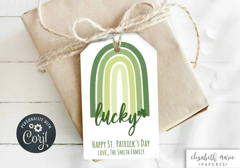 St. Patrick’s Day party favor with a customizable tag from Elizabeth Marie On Etsy